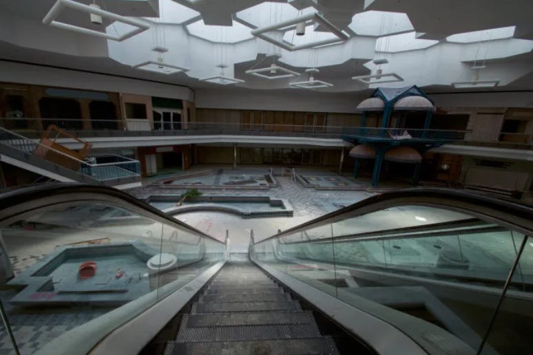 On the other hand, not all bubbles burst and create wonderful new productivity. Japan, whose financial markets I covered from 1991-1994, had almost no good to show from its corrupted balance sheets, and spent 30 years recovering. In the US, lots of the construction for the mortgage-centered 2008 financial crisis was bought up by big real estate investors who didn’t have to react quickly to price pressures. This is one reason why housing prices are still out of whack, and rentals are so high. Shopping mall busts gave us…empty shopping malls. They make for great photographs, but little else. Not every bust has a productive outcome.